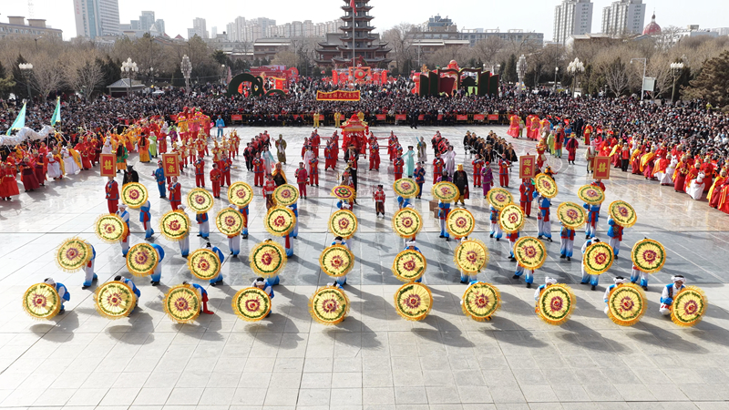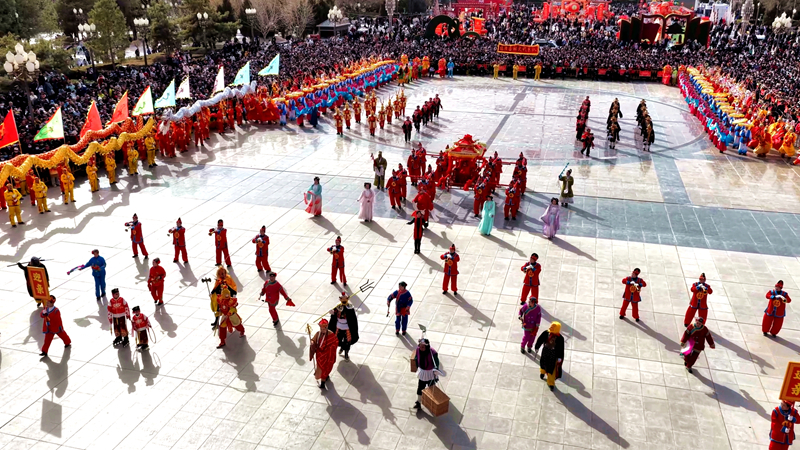 下午1时,社火集中展演在甘州区中心广场正式举行。临泽县社火代表队以“龙狮呈威武 秧歌献祥和”为主题,分三个篇章展开,将龙狮、西游文化、特色秧歌、旱船竹马四大传统表演融为一体,用精湛的技艺向全市父老乡亲致以最美好的新春祝愿。