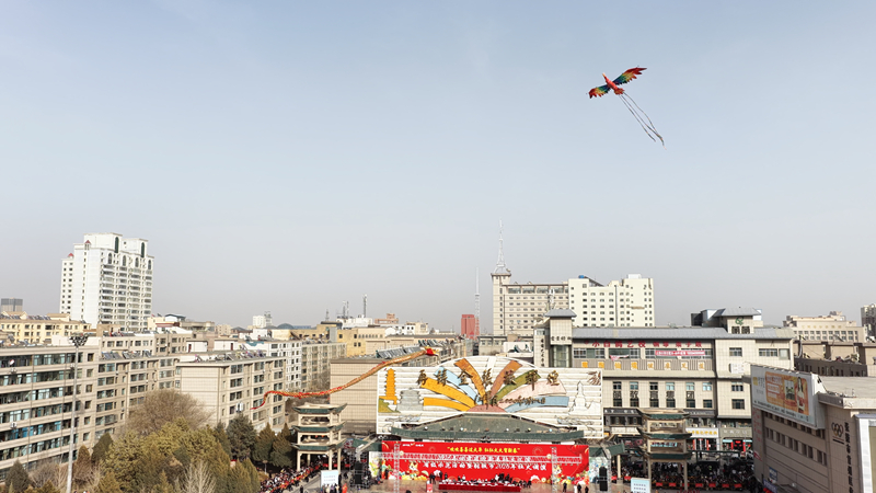 展演过程中,由临泽县融媒体中心提供的飞龙飞凤惊艳登场,为新春喝彩助力。只见彩色飞凤率先展翅,七彩尾羽流光溢彩,在空中盘旋三匝,寓意“凤舞九天报吉祥”;紧随其后,一条长达数十米的金龙腾空而起,在操控手的娴熟牵引下,时而昂首冲霄,时而俯身探海,与地面舞动的九条彩龙遥相唿应,上演了一场精妙绝伦的“龙飞凤舞”。飞龙在天,祥瑞降临;彩凤和鸣,盛世同庆——这一匠心独运的设计,将传统非遗技艺与现代光影手法巧妙融合,寄托着临泽儿女对伟大祖国繁荣昌盛、对全市人民幸福安康的美好祝愿。