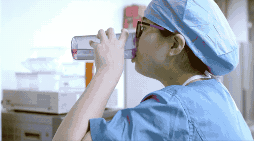 韩杨每次值班要值满30个小时不能睡觉,从早8点到第二天下午5点才能下班,任何紧急情况都要随叫随到。每个星期只能休1天。一天下来喝水的时间都没有,喝一次水能干两整瓶。